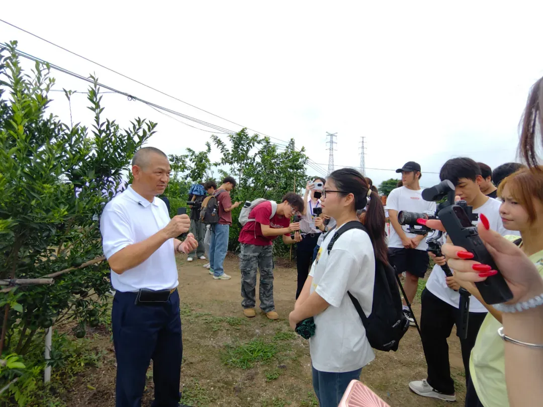 随后,非遗传承人梁朝晃亲自带领学生们走进生机盎然的柑田间,现场讲解新会柑有机种植的严苛标准。从全程采用有机肥滋养土壤,到坚持“预防为主”的生态理念;从运用物理手段科学除虫,到人工俯身细致除草,每一个环节都彰显着精细化管理的匠心。他用生动的实践告诉同学们,唯有尊重自然规律、悉心守护,才能让柑树在纯粹的生态环境中自然生长,孕育出品质上乘的新会柑原料。