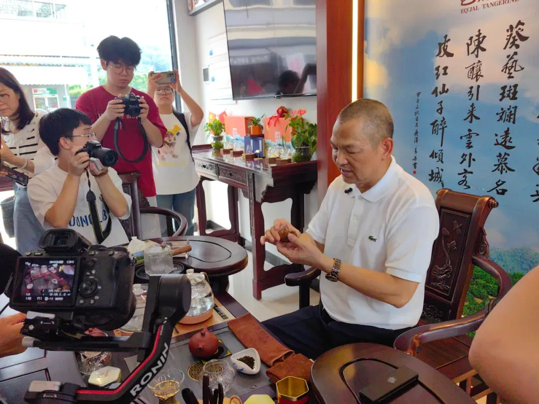 最后,非遗传承人梁朝晃向大家传授邑葵大红柑普茶的冲泡技术,带领大家观茶色、闻茶香、品茶味,并现场接受同学们的采访讲解创立品牌的初心与故事。